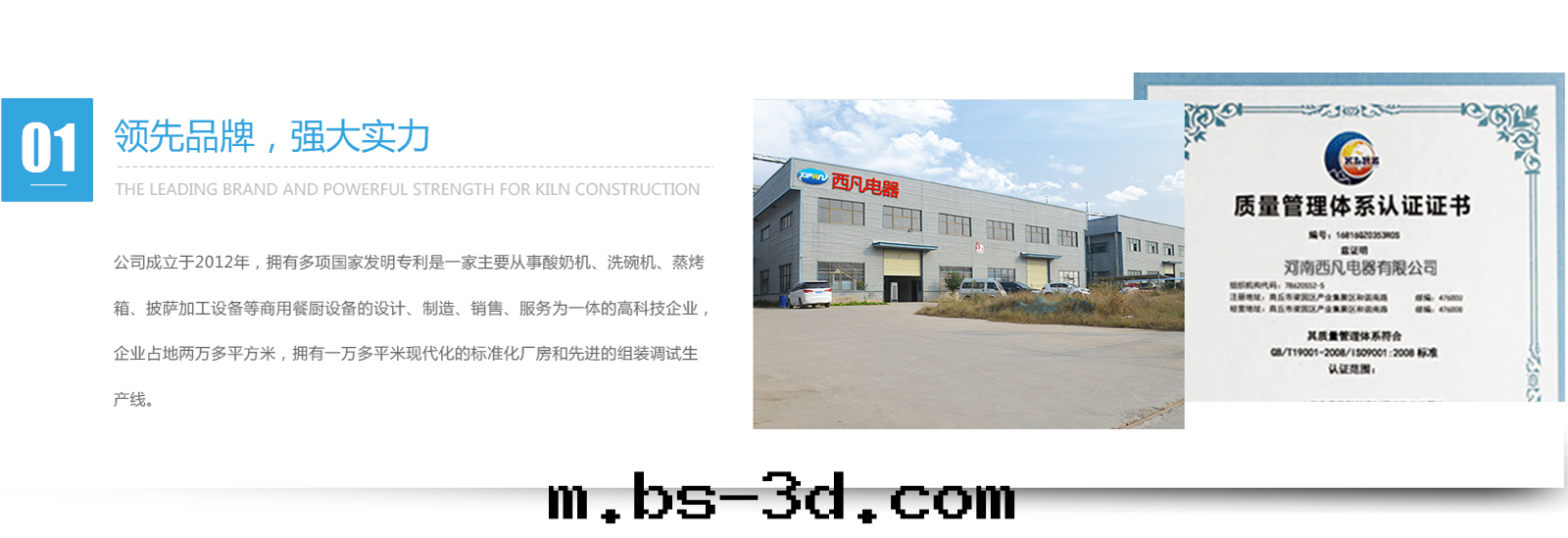 河(hé)南(nán)西(xī)凡電(diàn)器有(yǒu)限公司位(wèi)于(yú)河(hé)南(nán)省(shěng)商丘市梁(liáng)园区産業集聚区洋(yáng)森(sēn)路(lù)(和(hé)諧路(lù))52号(hào)。商丘市是(shì)处在(zài)高(gāo)速铁(tiě)路(lù)和(hé)高(gāo)速公路(lù)双(shuāng)黃金(jīn)十(shí)字(zì)架的核心(xīn)区域,具有(yǒu)地(dì)理(lǐ)位(wèi)置優越,交通(tòng)便利的優勢。公司成(chéng)立于(yú)2012年(nián),擁有(yǒu)多項國(guó)家(jiā)發(fà)明(míng)專利,是(shì)一(yī)家(jiā)主(zhǔ)要(yào)從事酸(suān)奶機(jī)、洗碗(wǎn)機(jī)、蒸烤箱(xiāng)、披薩加工設備等商用餐廚設備的設計(jì)、制造、銷售、服(fú)務(wù)为(wèi)一(yī)體(tǐ)的高(gāo)科技企業,企業占地(dì)两(liǎng)万多平方(fāng)米(mǐ),擁有(yǒu)一(yī)万多平米(mǐ)現(xiàn)代(dài)化(huà)的标(biāo)準化(huà)廠(chǎng)房(fáng)和(hé)先(xiān)進(jìn)的組裝(zhuāng)調試生(shēng)産線(xiàn)。        公司有(yǒu)專業的研發(fà)团隊,具有(yǒu)強(qiáng)大(dà)的技術(shù)研發(fà)实力,企業耗巨資引進(jìn)國(guó)外(wài)的先(xiān)進(jìn)設備,擁有(yǒu)優质的激光(guāng)切(qiè)割設備、數控沖、剪、折彎、自(zì)動(dòng)焊接等系(xì)列加工設備,有(yǒu)一(yī)支機(jī)械、電(diàn)器、燃气(qì)等高(gāo)素质的生(shēng)産作(zuò)業团隊,有(yǒu)无窮潛力,並(bìng)有(yǒu)精良的质量(liàng)檢測設備和(hé)儀器。産品暢銷國(guó)內(nèi)外(wài)。我(wǒ)们公司的宗旨是(shì):“以(yǐ)市场(chǎng)为(wèi)導向(xiàng)、以(yǐ)科技为(wèi)依托,以(yǐ)质量(liàng)求生(shēng)存、以(yǐ)誠信(xìn)謀發(fà)展。”     &n...查看(kàn)更(gèng)多